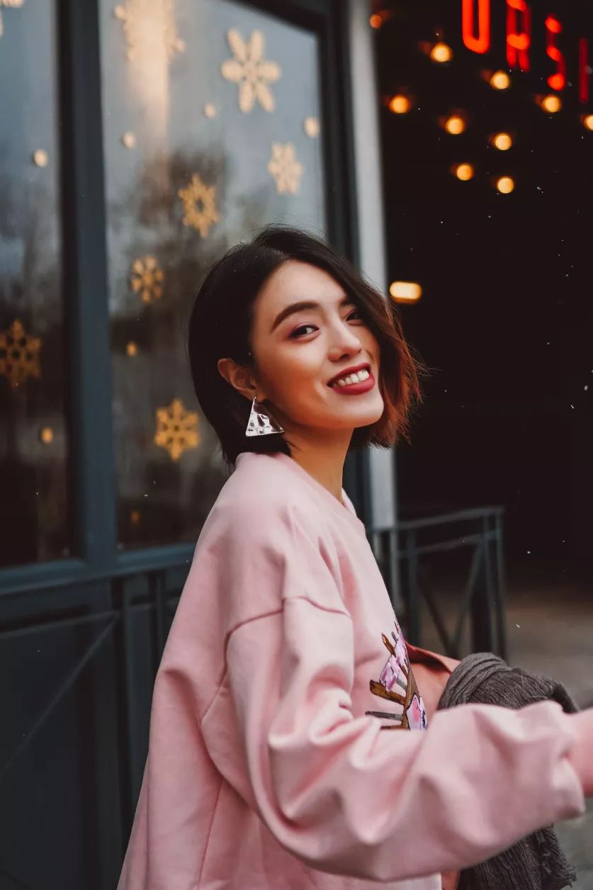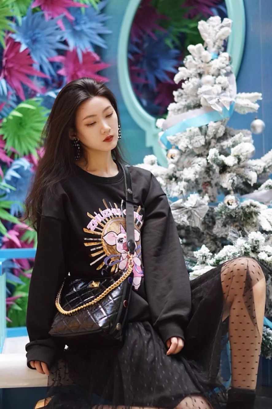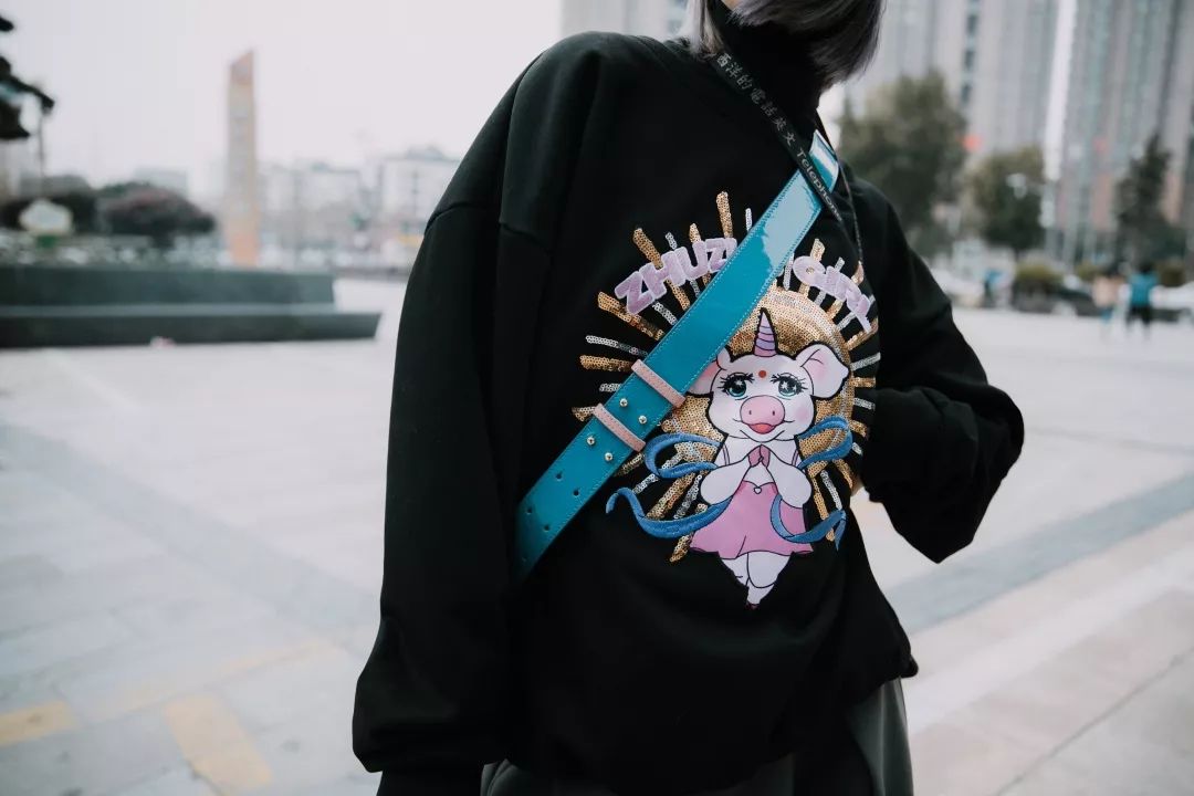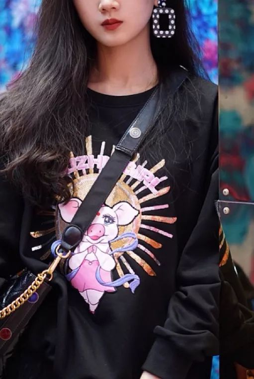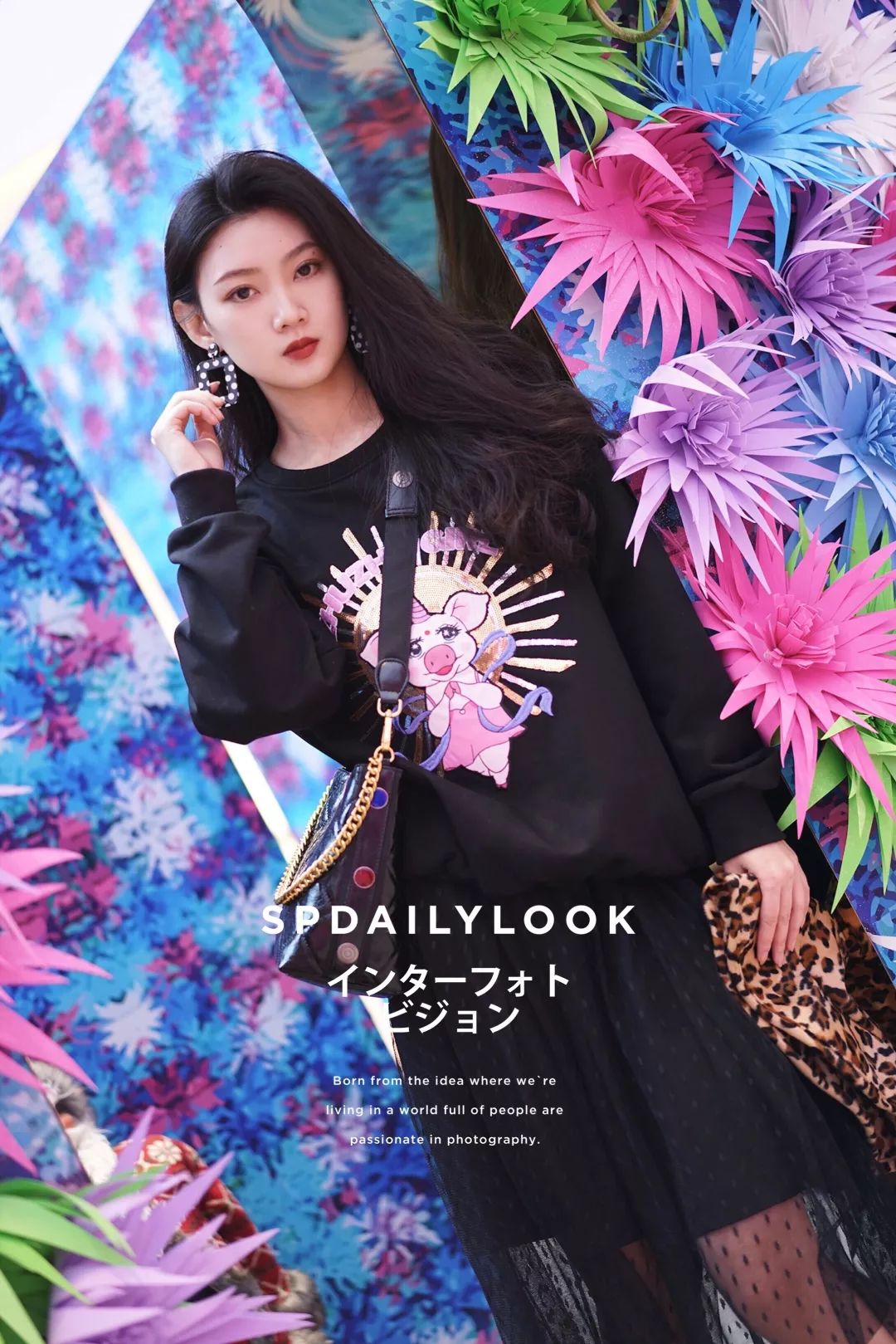 粉蓝撞色,是黑色卫衣酷女孩儿!