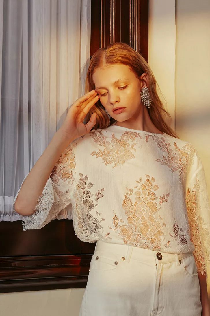 细腻女性化的蕾丝与稍硬朗的水洗牛仔组合,