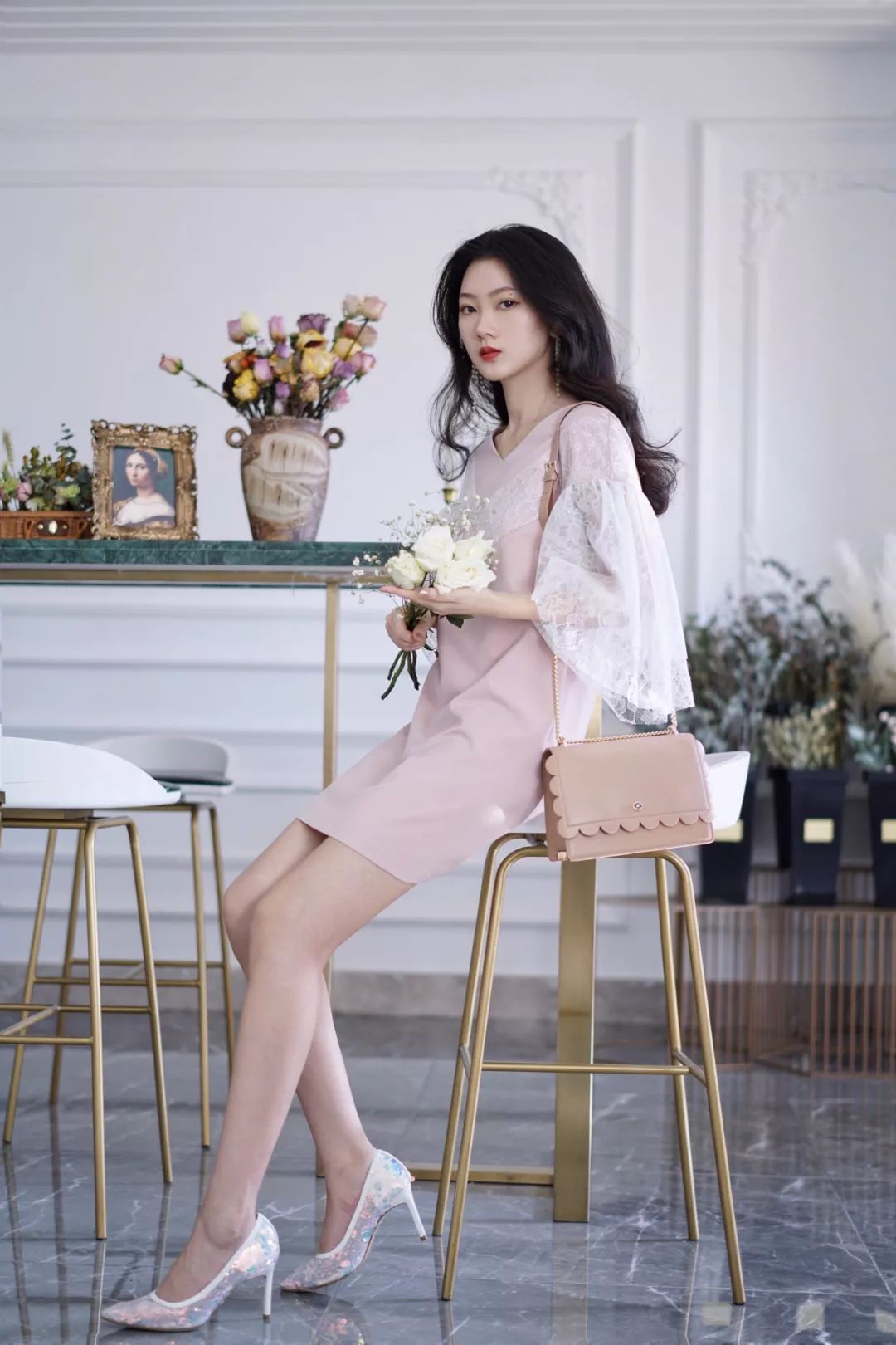 新生代小花卢洋洋 着 YAOZONKU蕾丝连衣裙