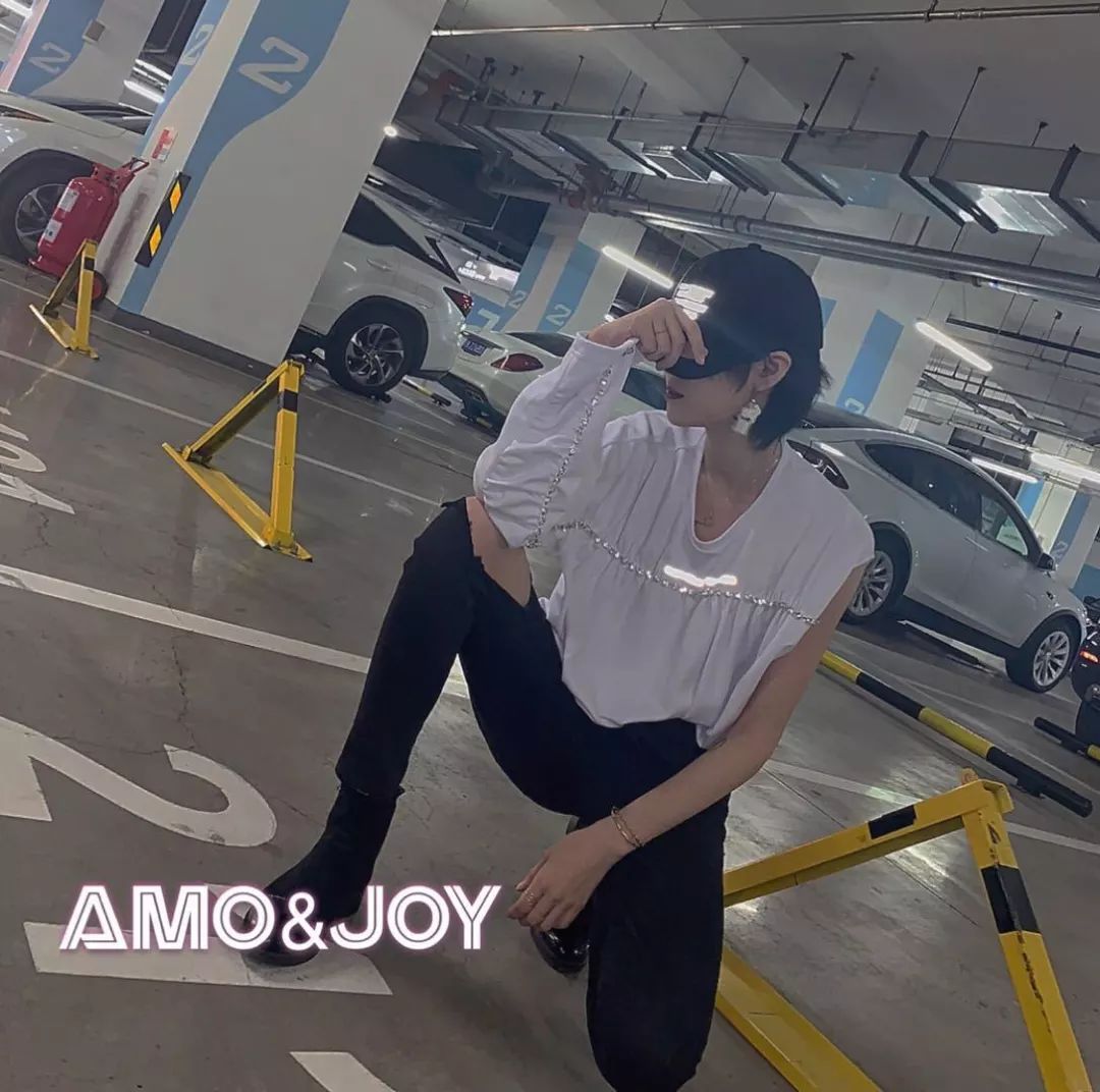 王晓晨 IN 不规则亮钻LOGO T恤 By AMO&JOY