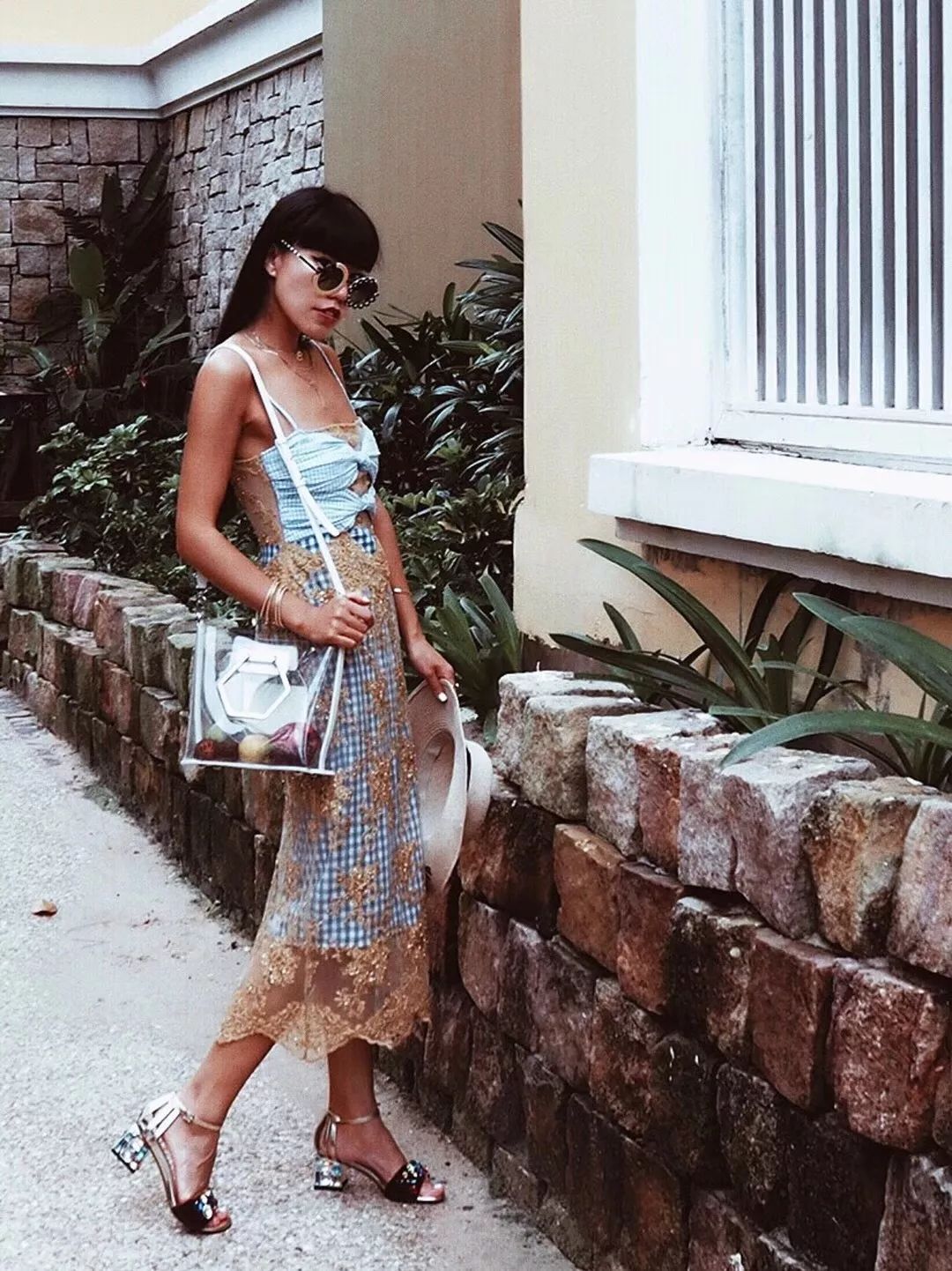 SNH48成员冯薪朵着提花吊带和鱼尾半裙出席活动