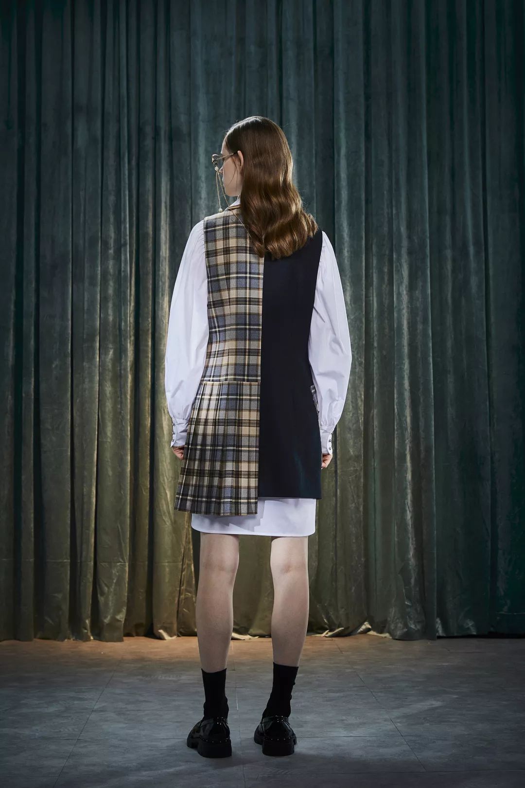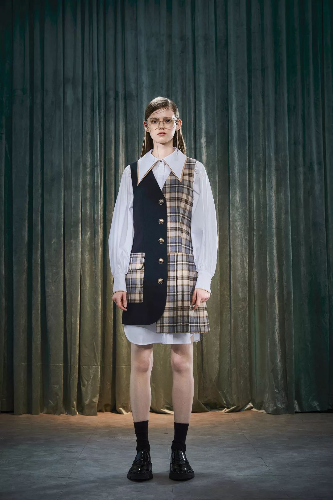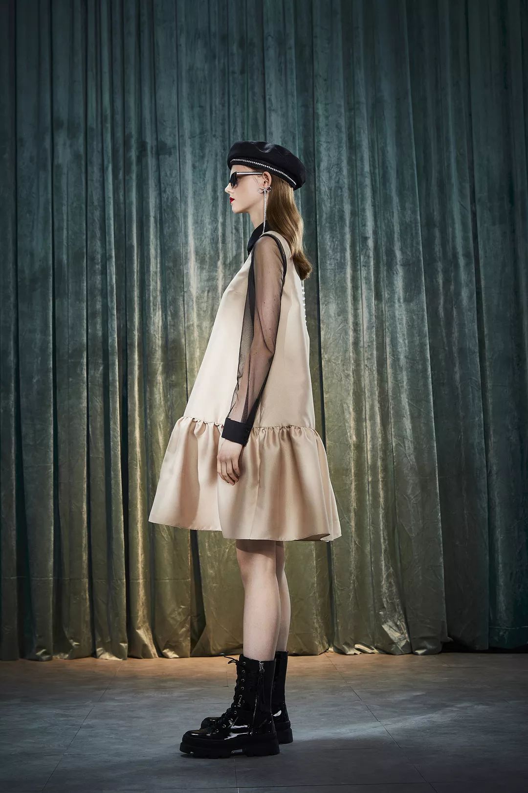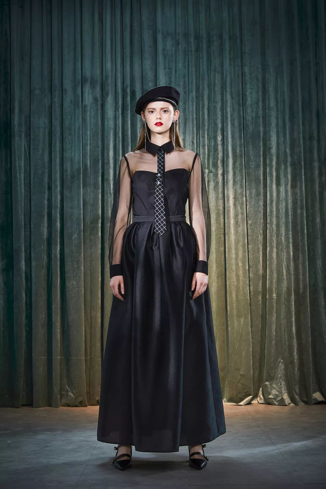 荷叶摆A型背心裙+透视拼接领带衬衣
