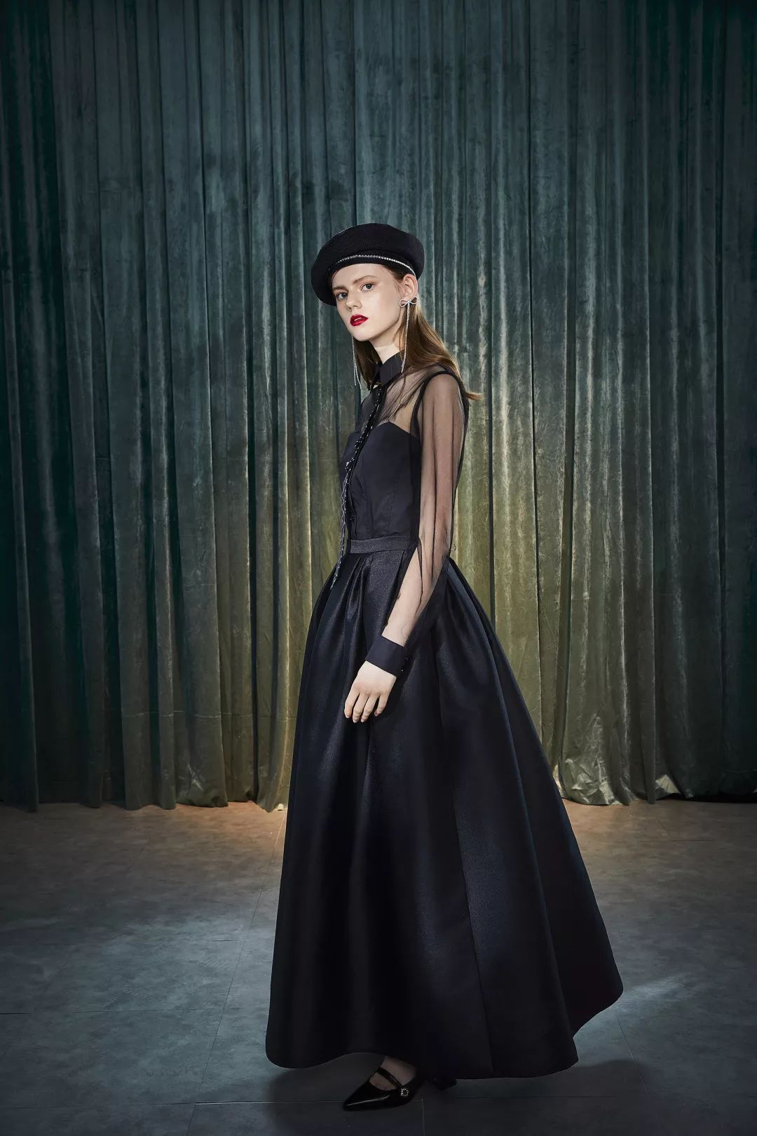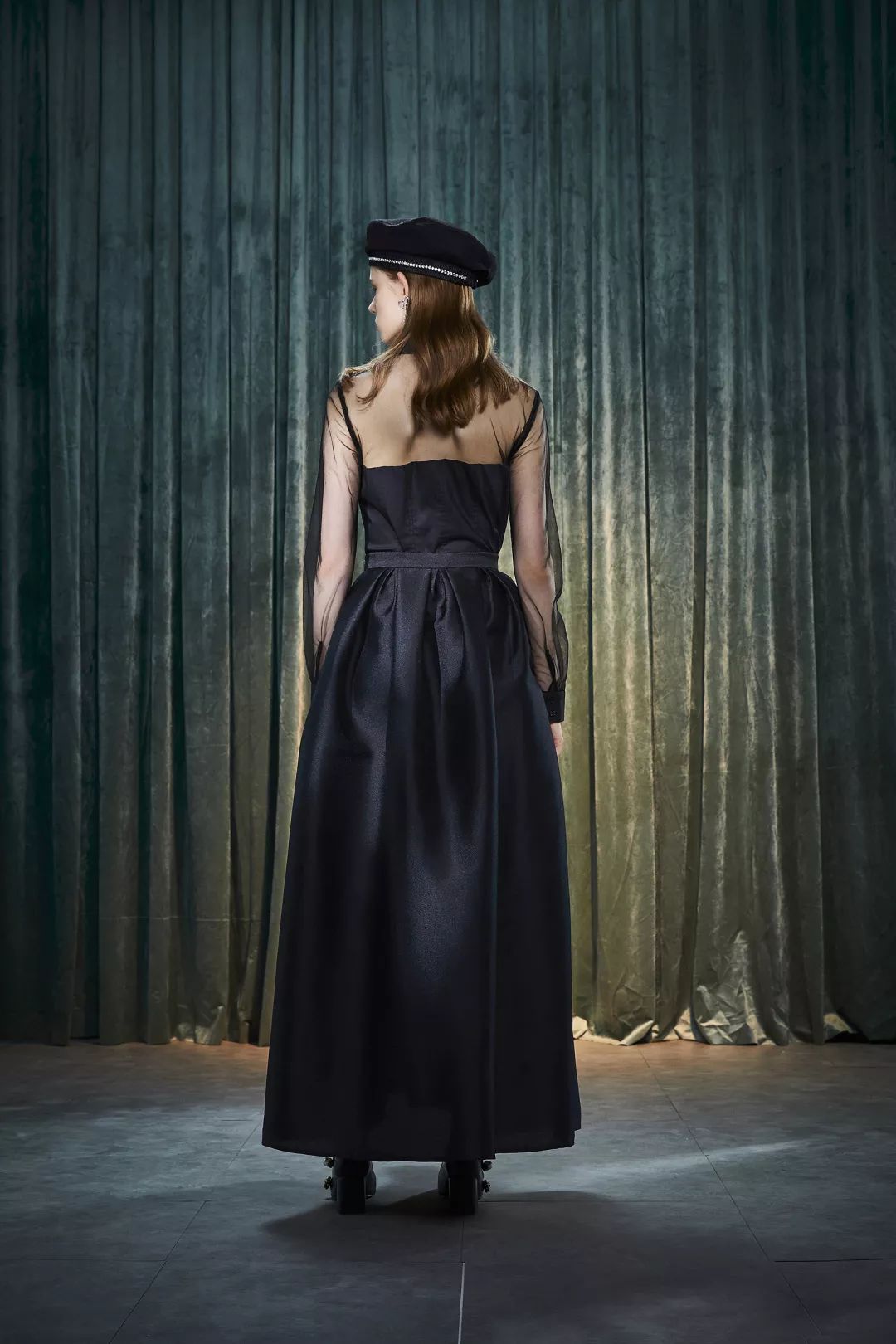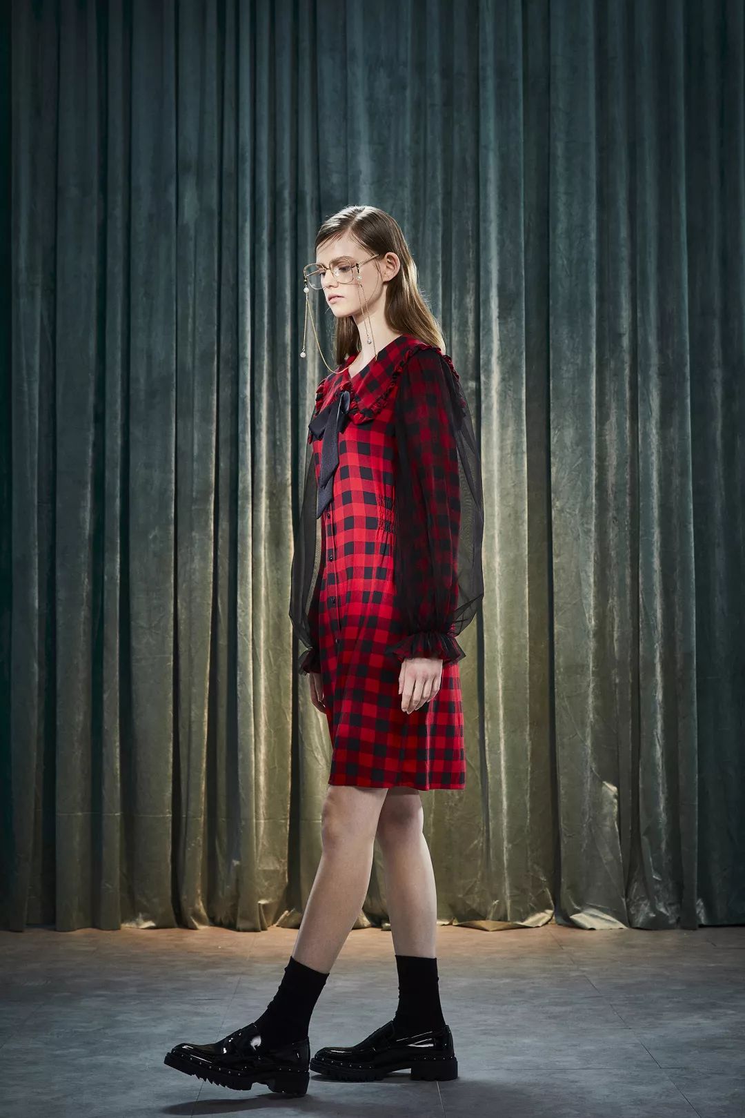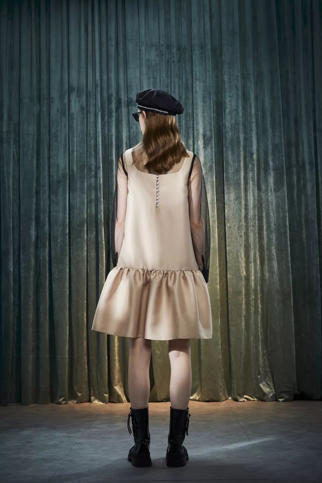 荷叶摆A型背心裙+透视拼接领带衬衣