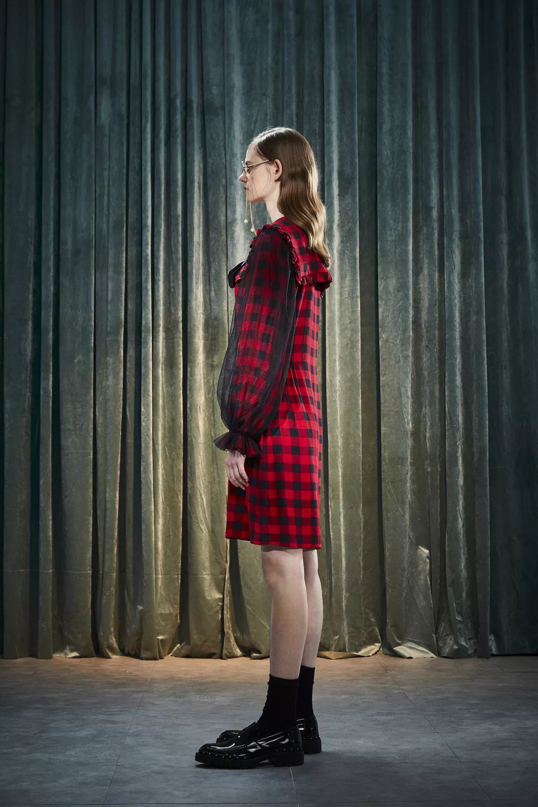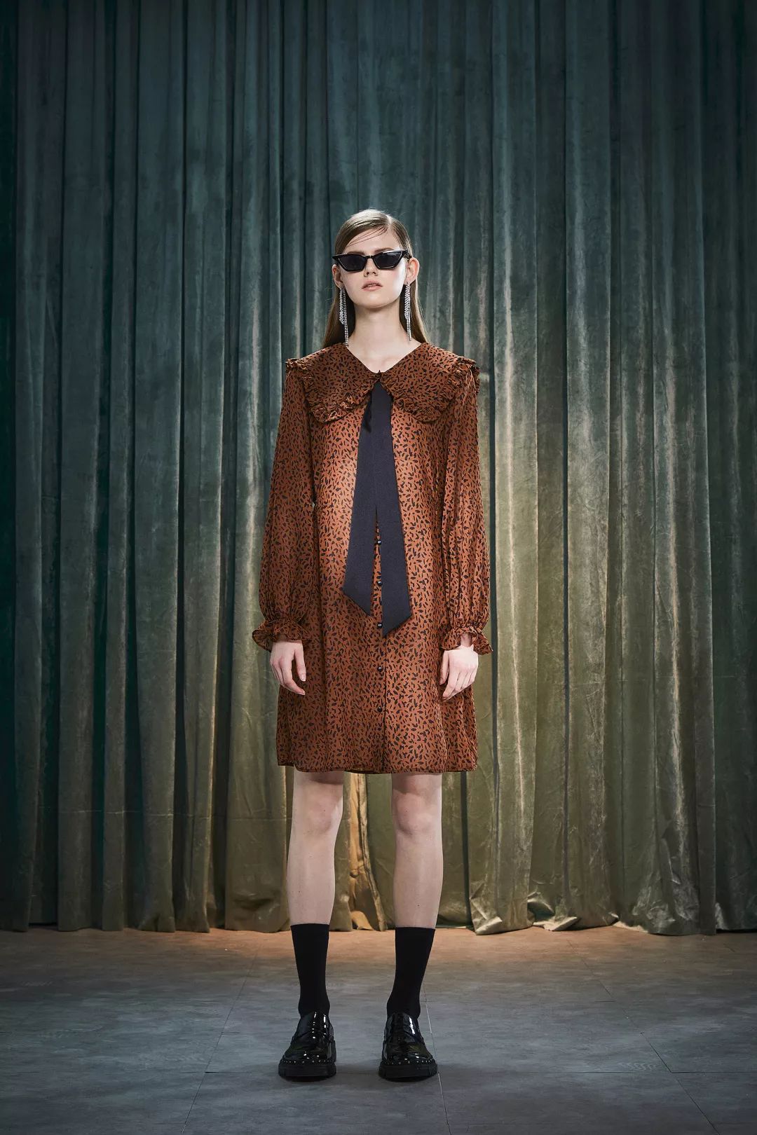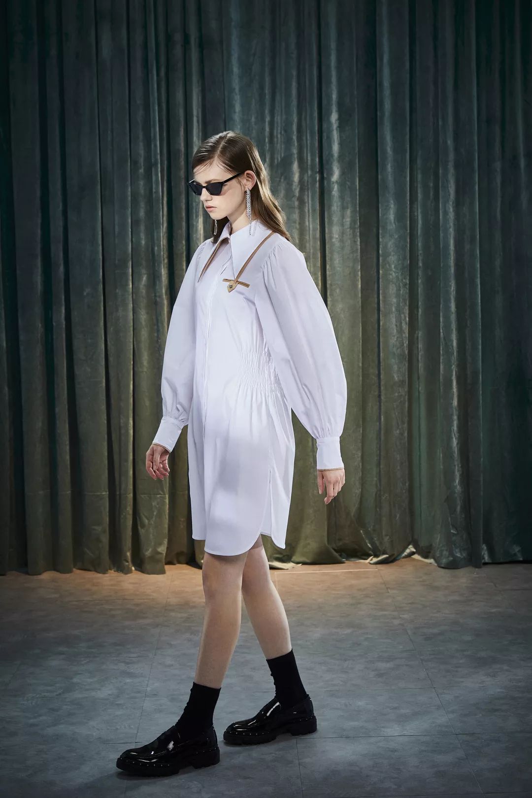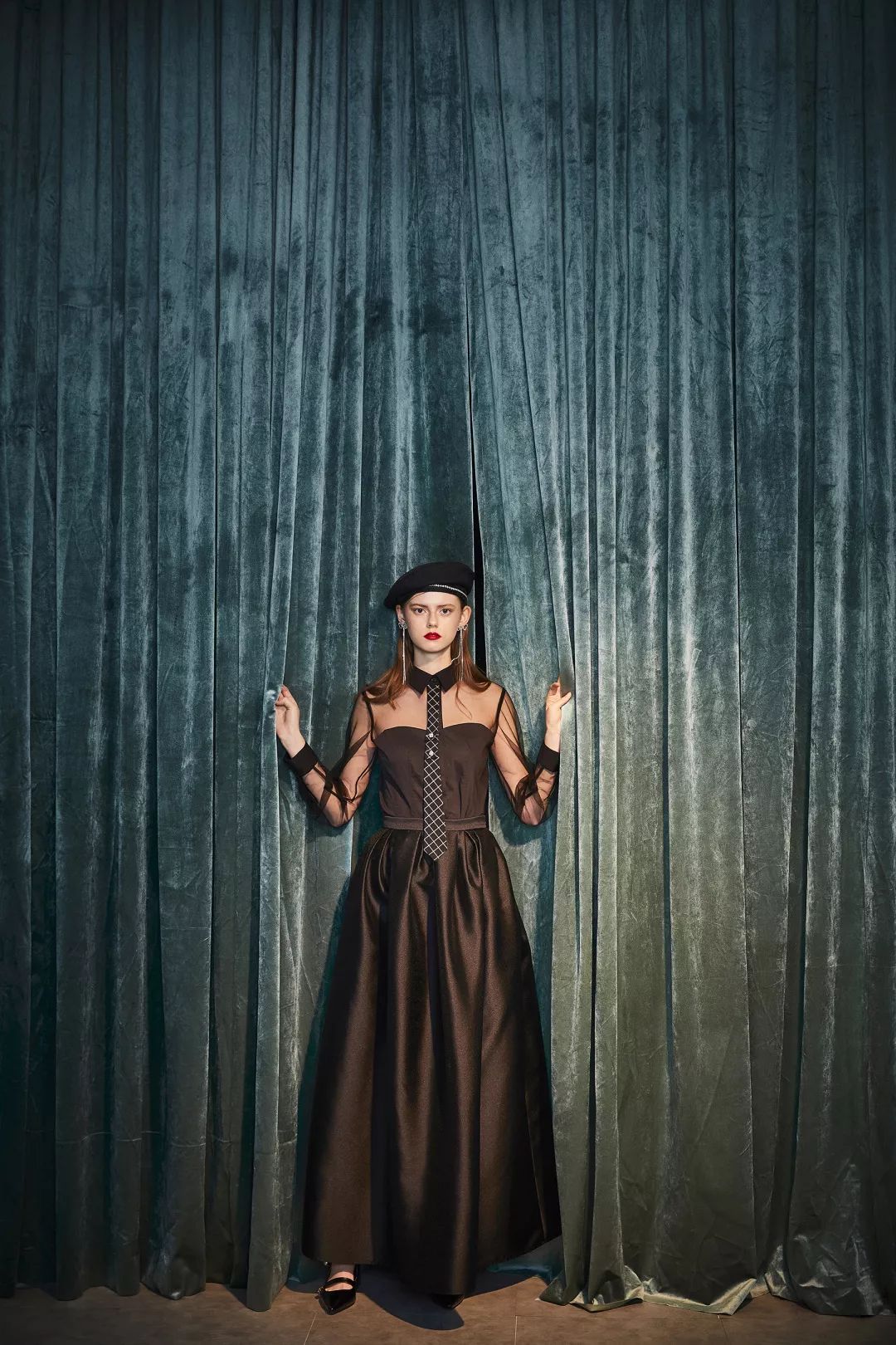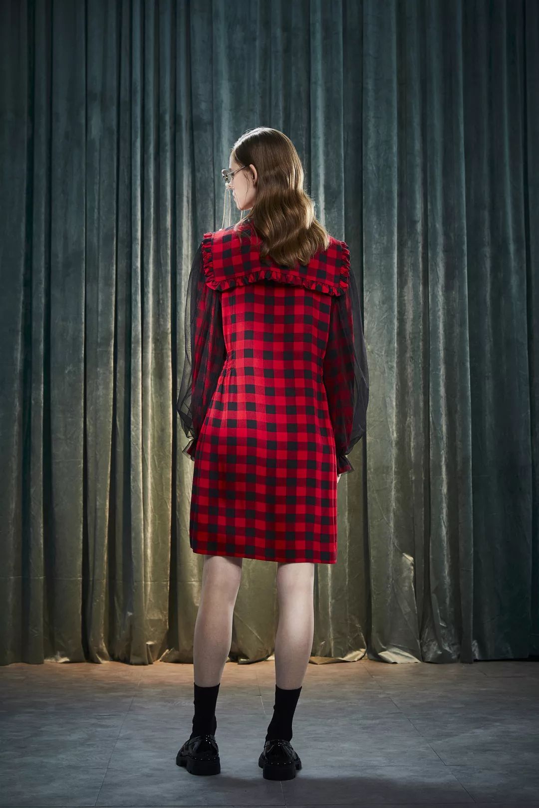 荷叶摆A型背心裙+透视拼接领带衬衣