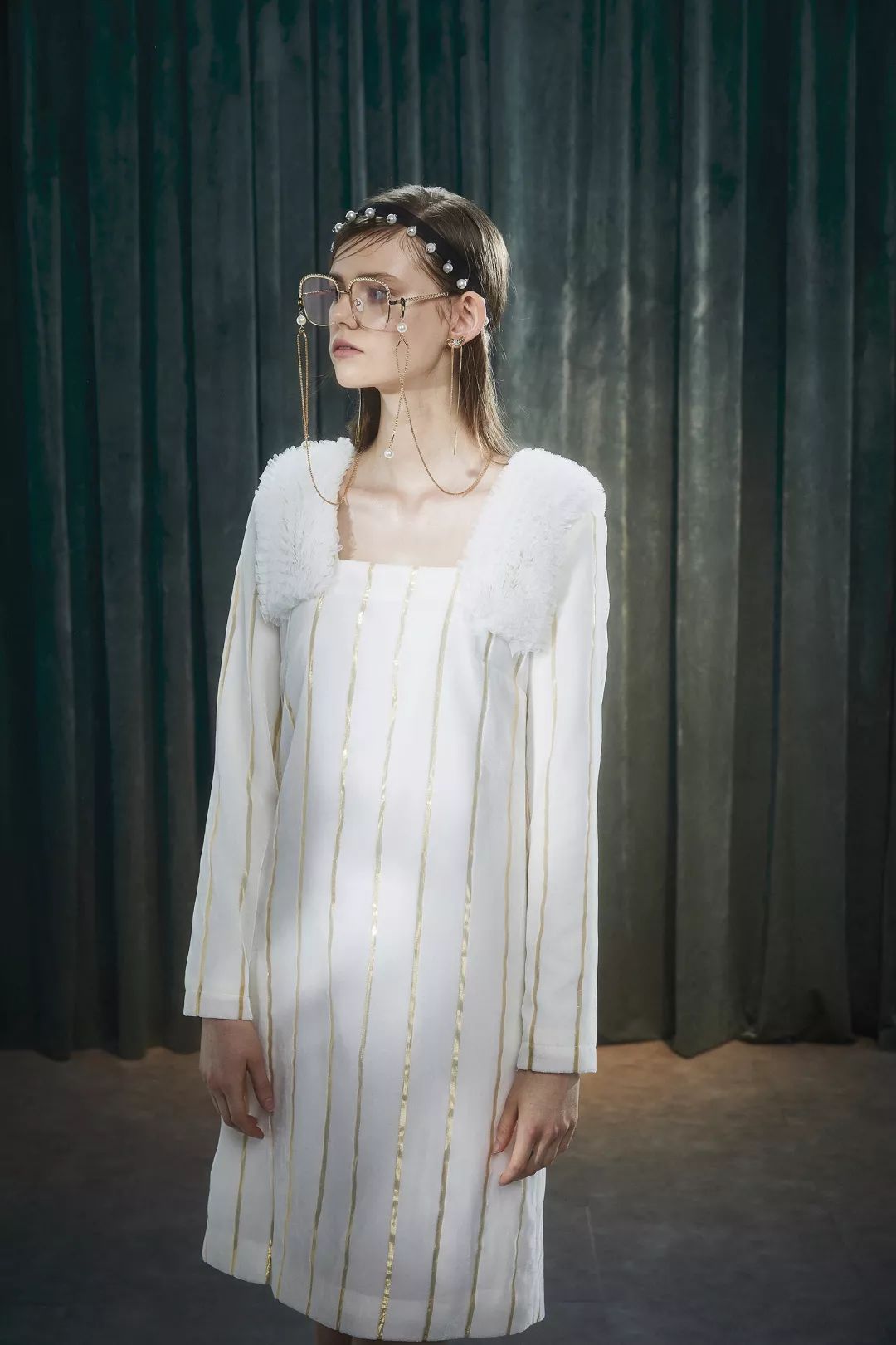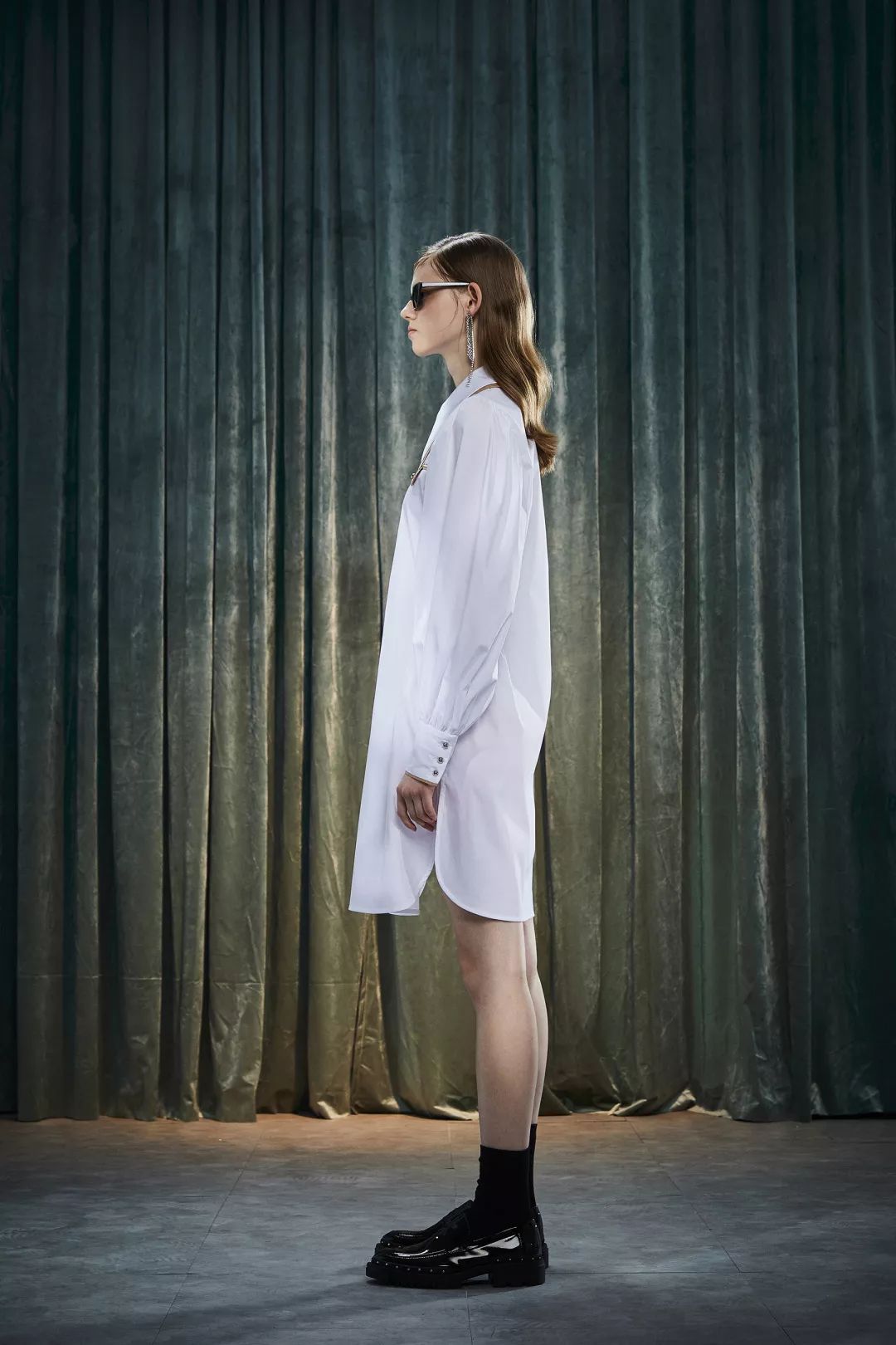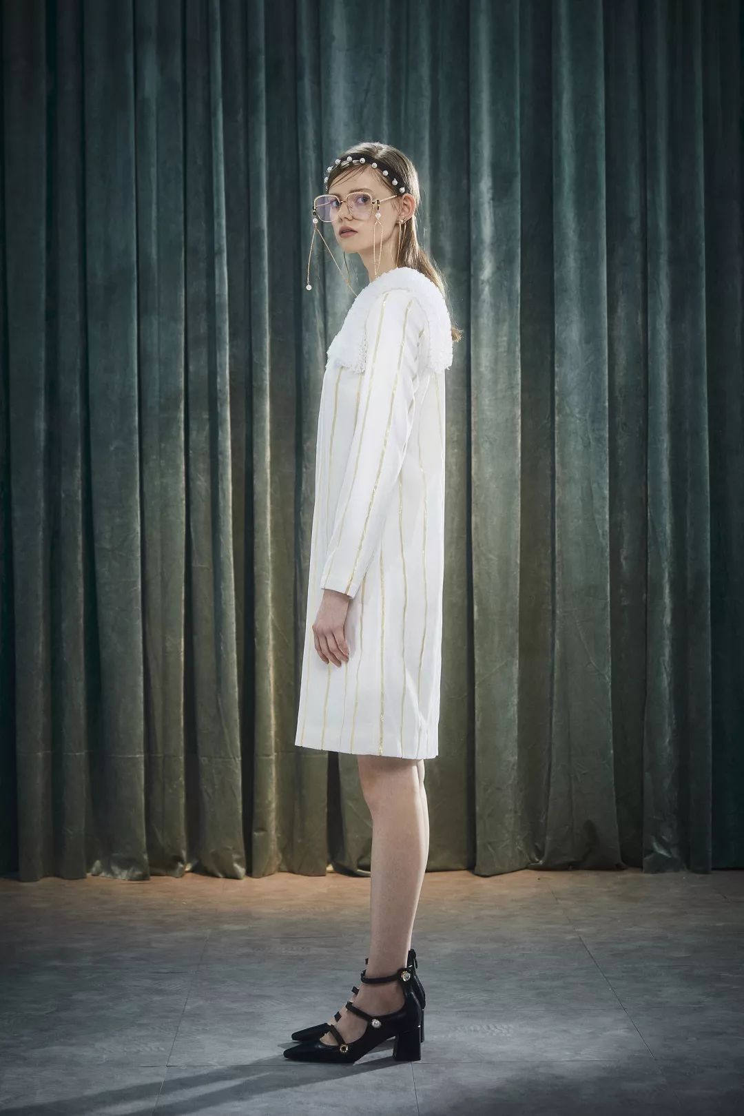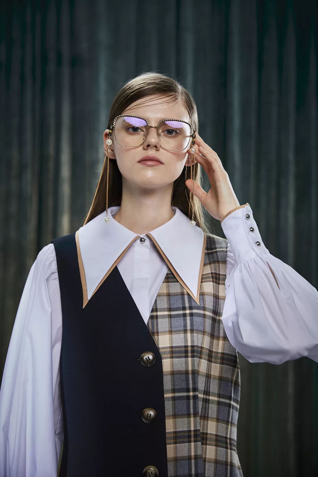 荷叶摆A型背心裙+透视拼接领带衬衣