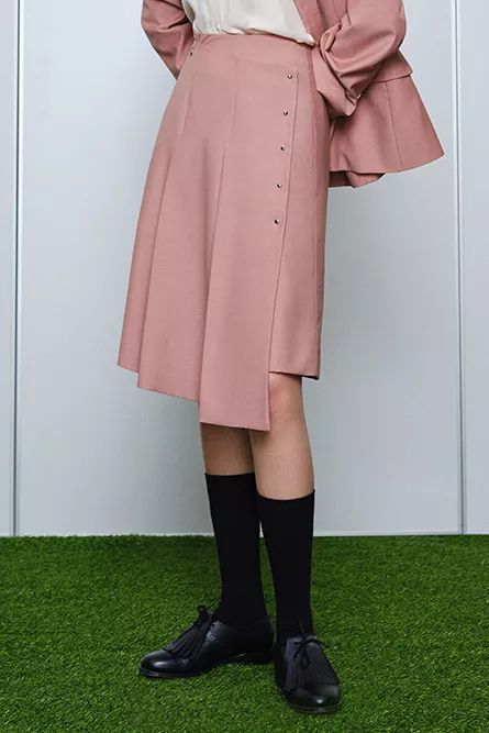 橘粉色羊毛夹克外套+斜裁裙摆半裙