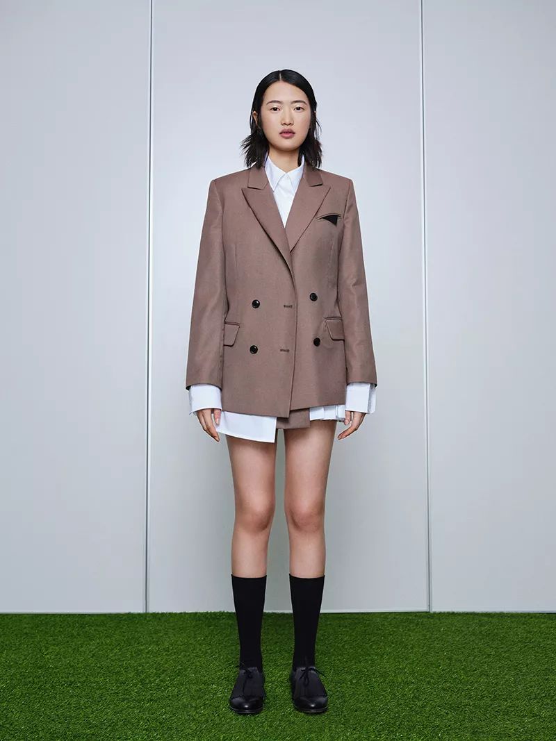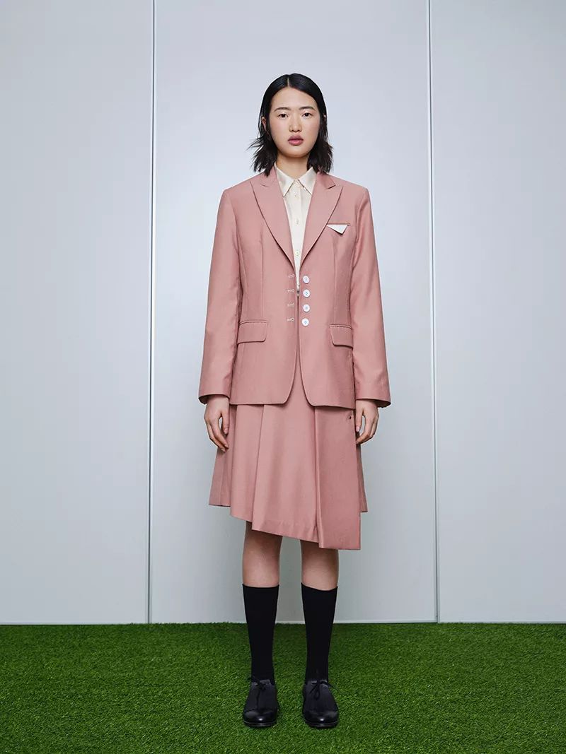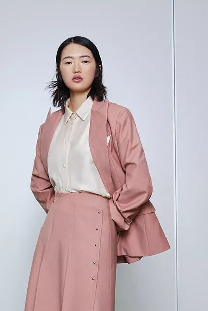 利落的版型混搭温柔粉