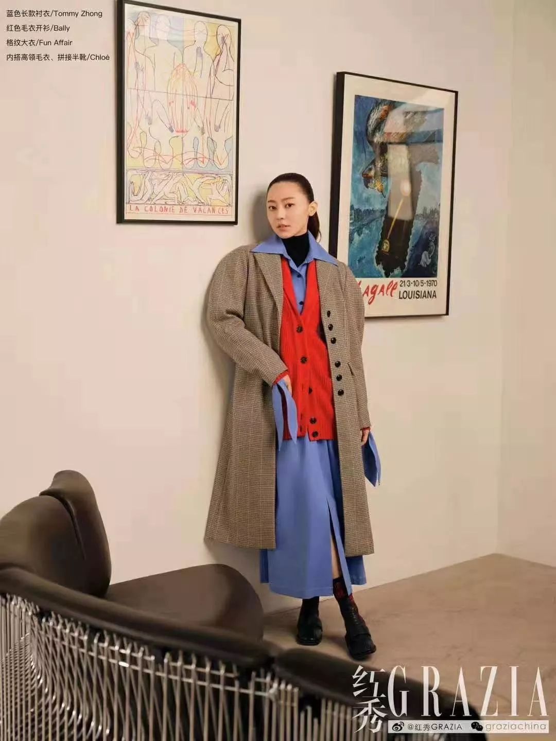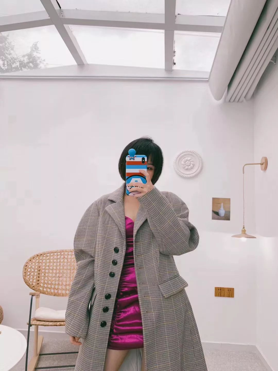 黄梦莹 in FUN AFFAIR AW19 威尔士千鸟格大衣