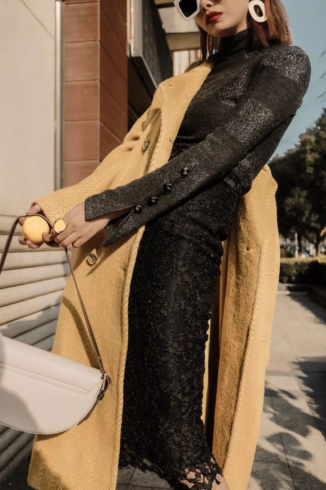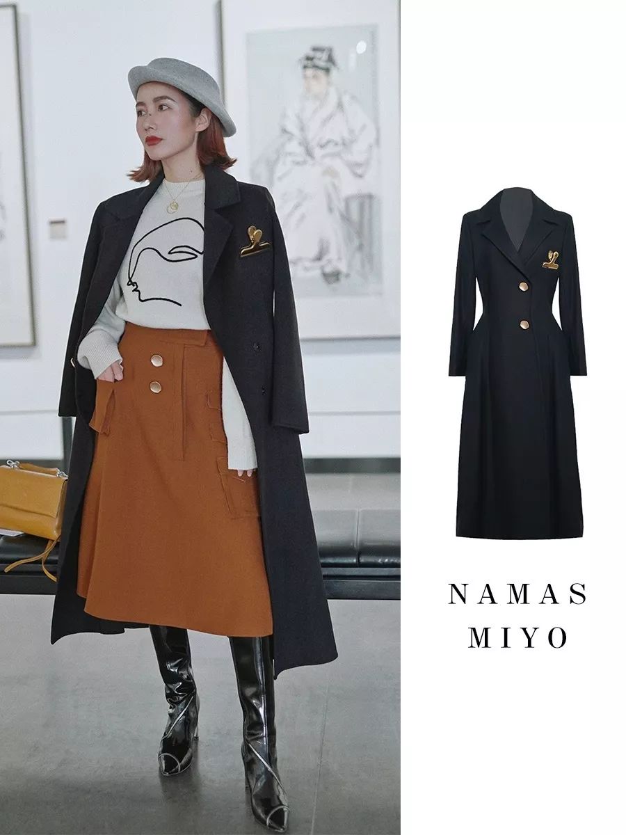外搭黑色同款收腰大衣