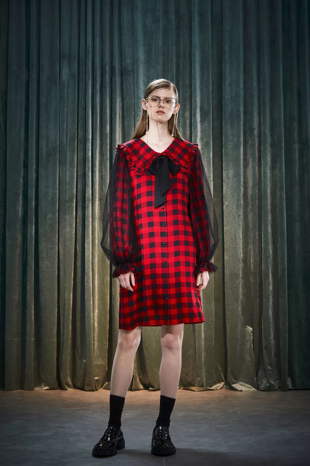 飘带连衣裙(经典红黑格)