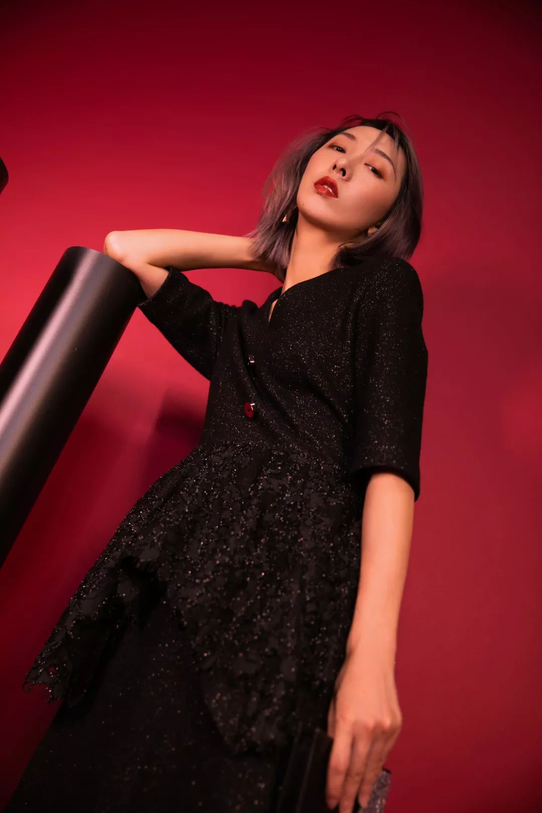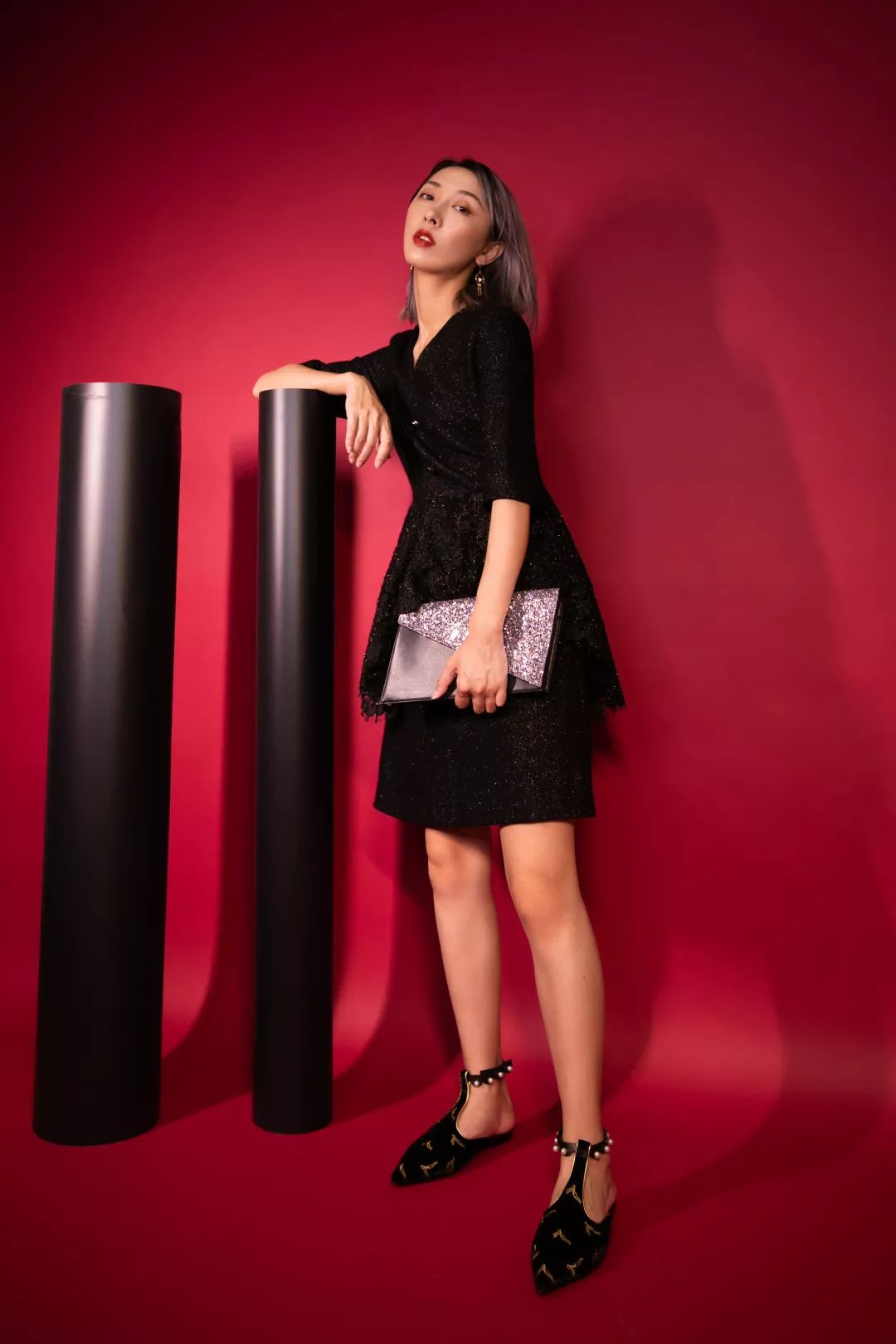 闪亮连衣裙搭配温柔烟粉色