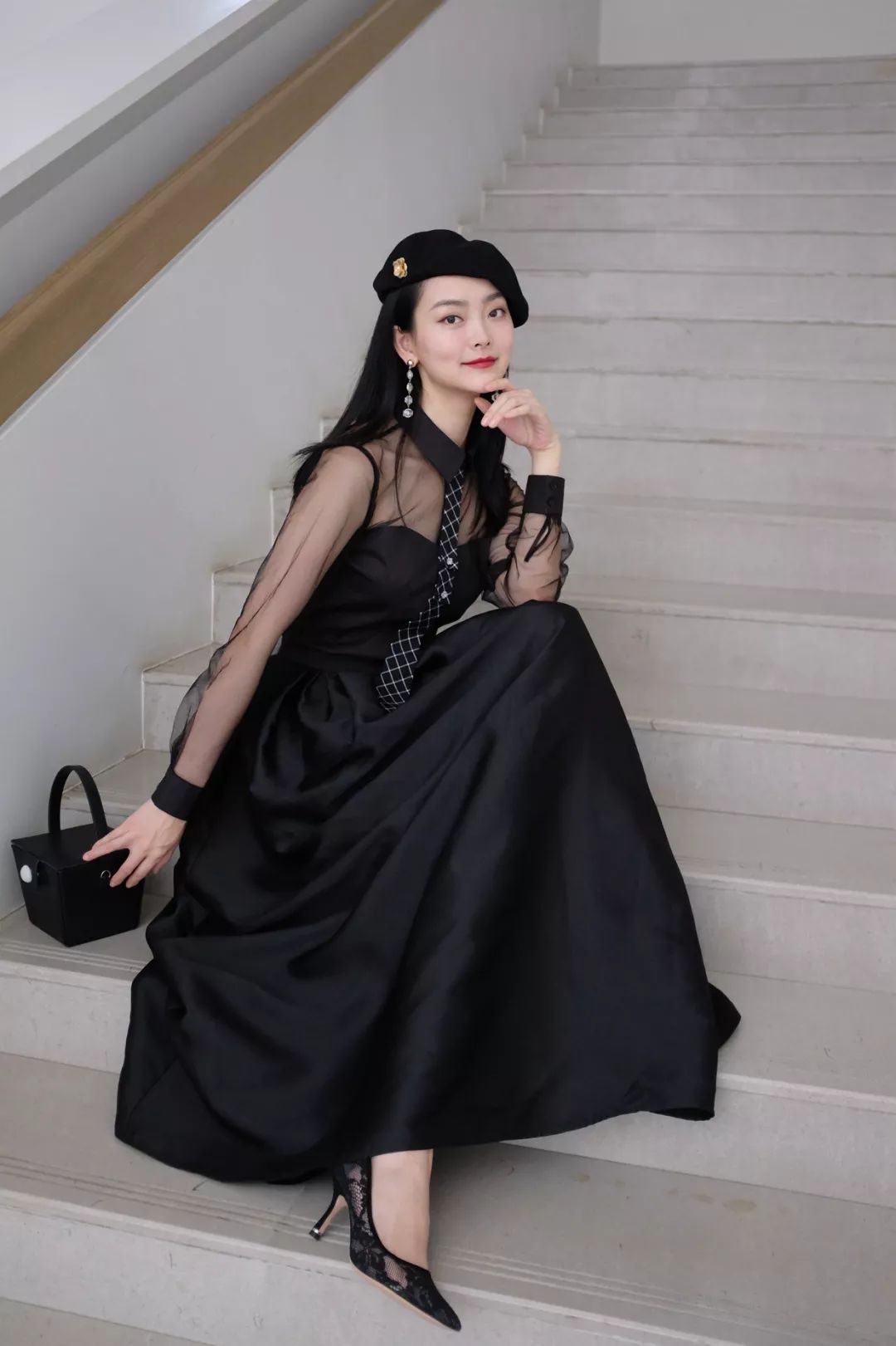 多层黑色网纱袖